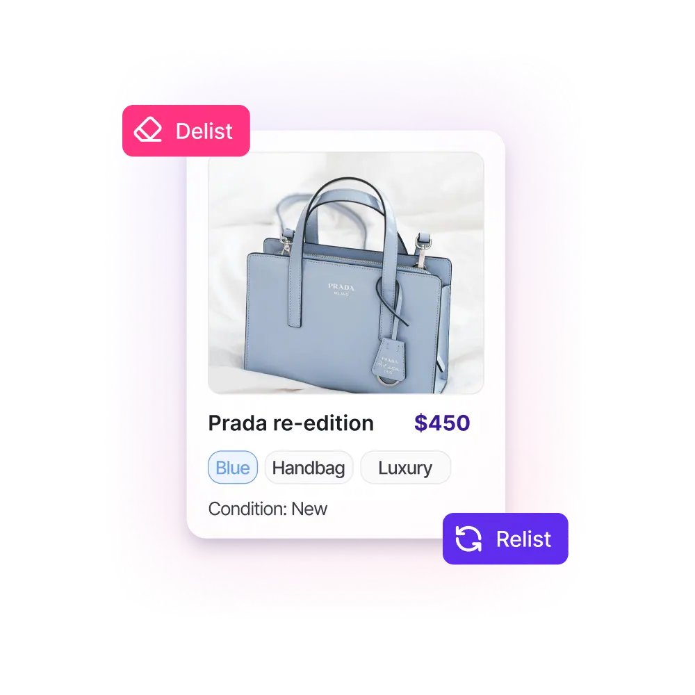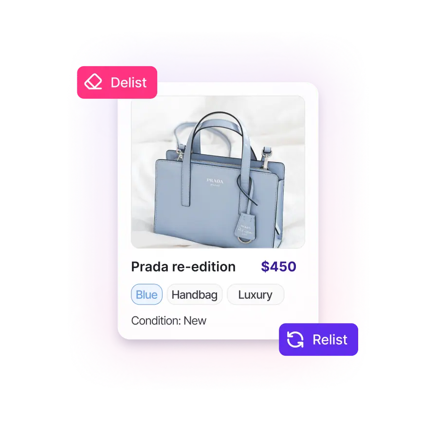 Stay in control of your inventory by instantly removing sold items and relisting where it still makes sense so you avoid overselling and keep every marketplace up to date.