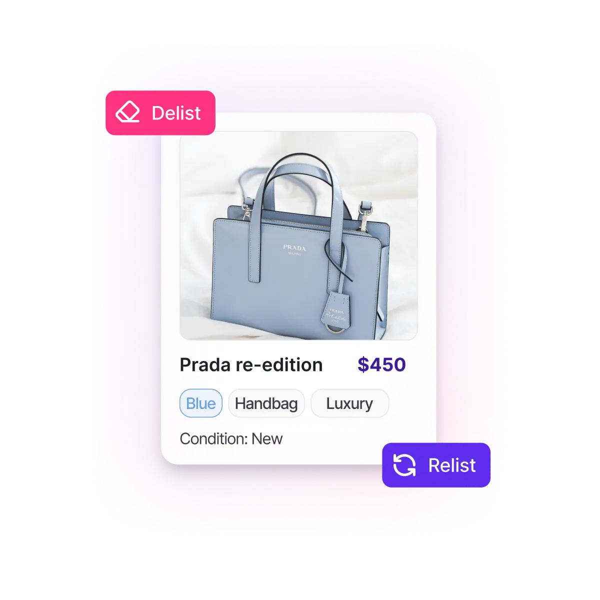 Delist and relist with one click to keep your listings fresh and visible
